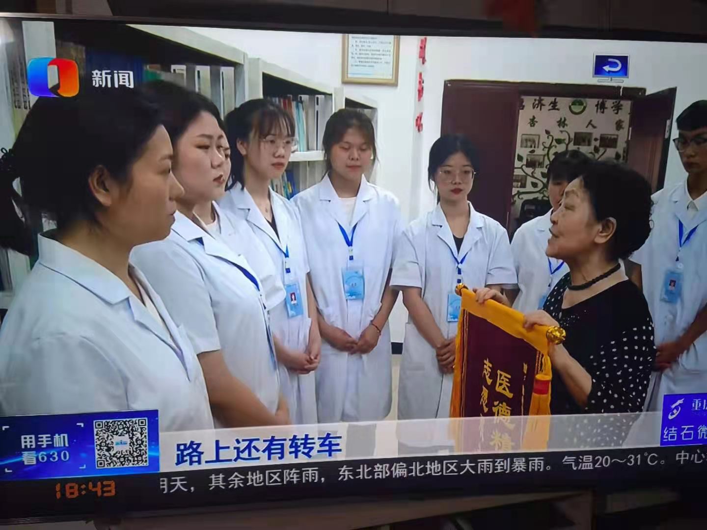 6月25日,70多岁的王进阿姨专程前往澳门电子pg游戏官网临床医学院,为党员同志程元辉及其所带领的学生志愿者团队送上了“众爱创奇迹,康复暖人心”锦旗。王阿姨感激的说道:“感谢程老师和众康志愿者团队,感谢学校培养了这么好的老师和学生,7年来风雨无阻的帮扶,让我的儿子重新站了起来,让我的家庭走出了阴霾……”。