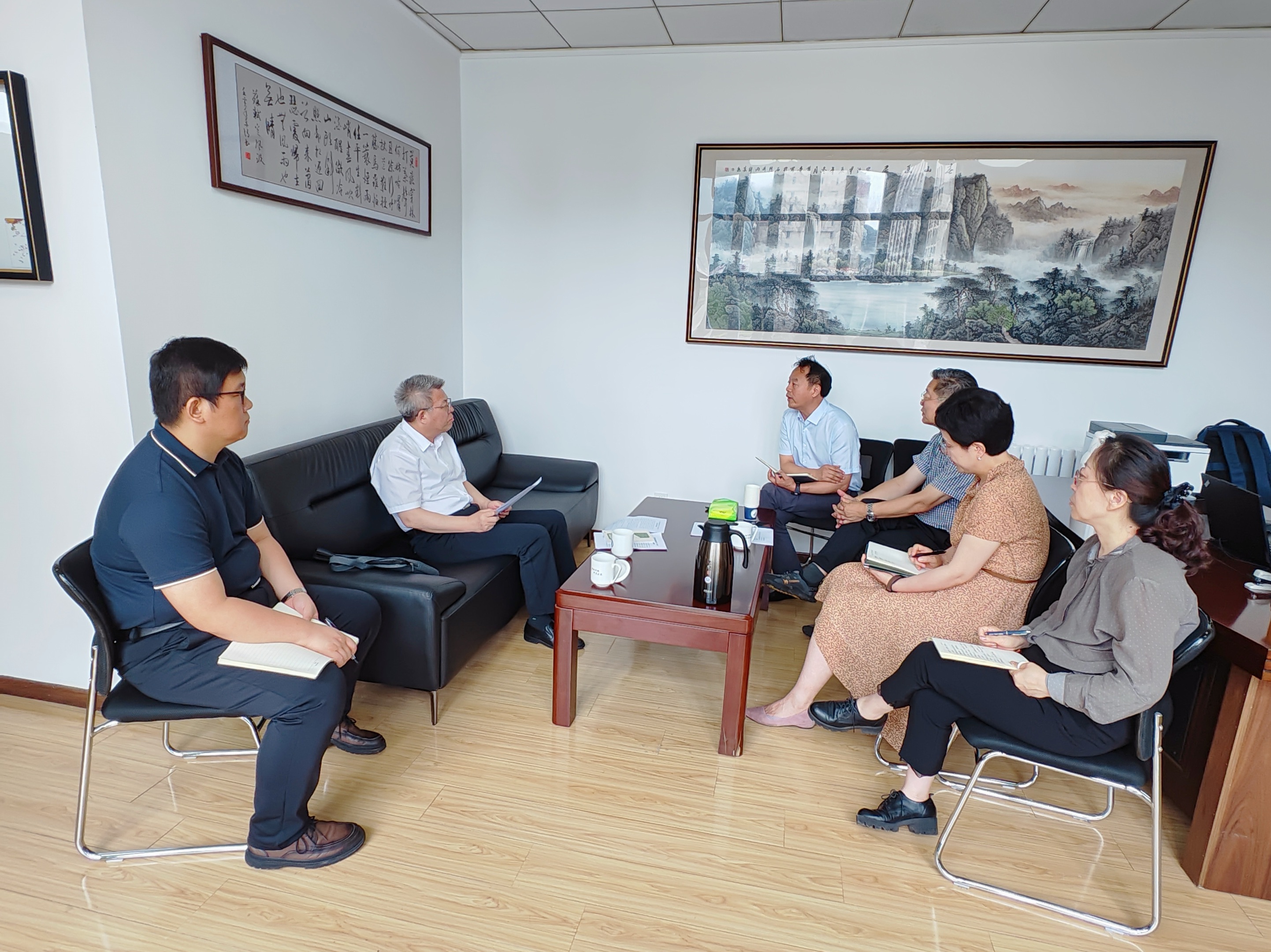 座谈中,王殿辉教授汇报了团队的研究方向、发展规划以及在推动人工智能与学校传统优势学科交叉融合方面的构想与支撑。