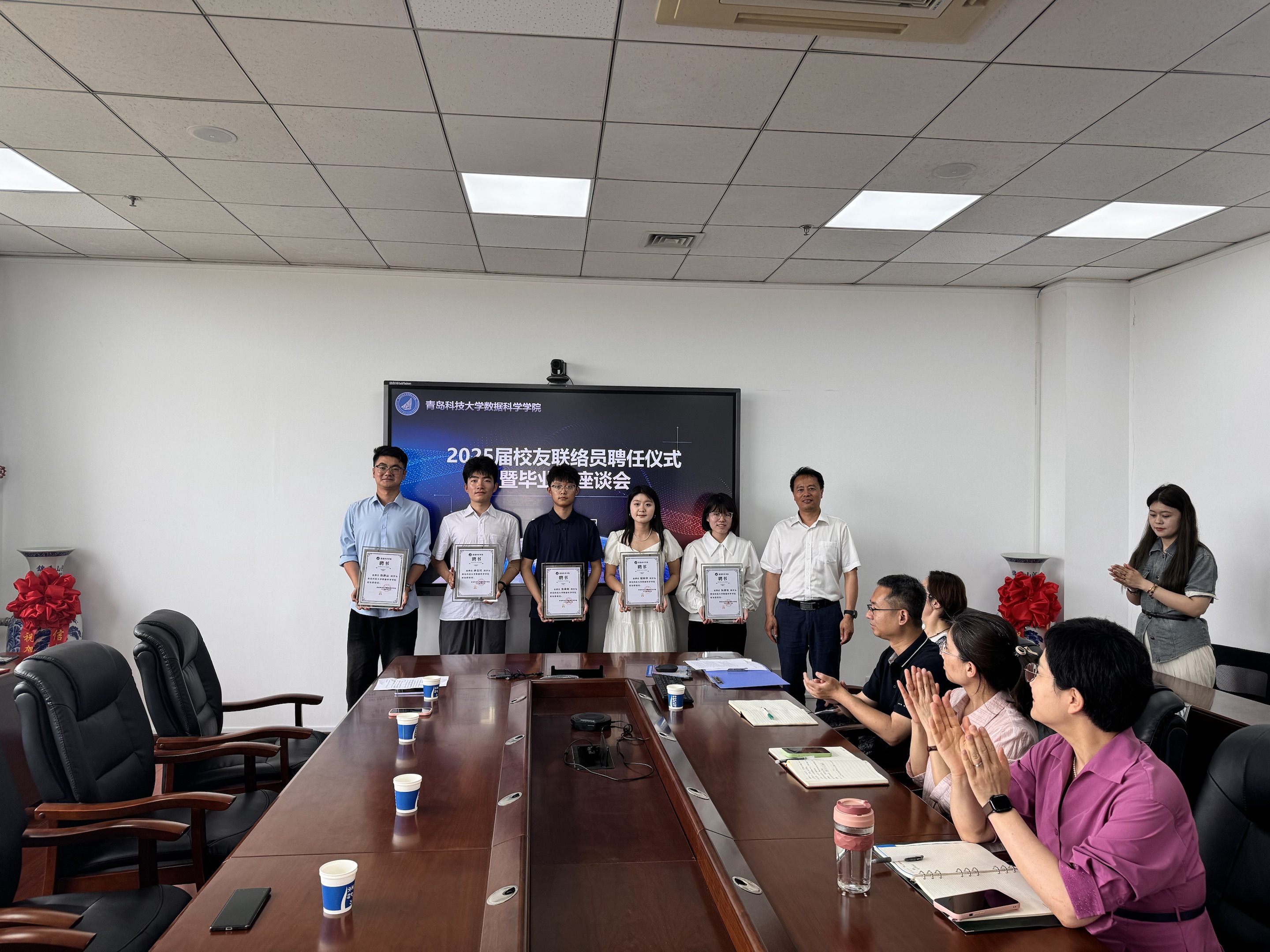 6月13日下午,beat365正版唯一官网必一在图书馆A区5004举办2025届校友联络员聘任仪式暨毕业生座谈会。此次活动由学院党总支副书记兼副院长顾姗姗主持,党总支书记张玉,常务副院长杜军威,副院长张淑军、李辉,各专业负责人以及毕业生代表共同参与。