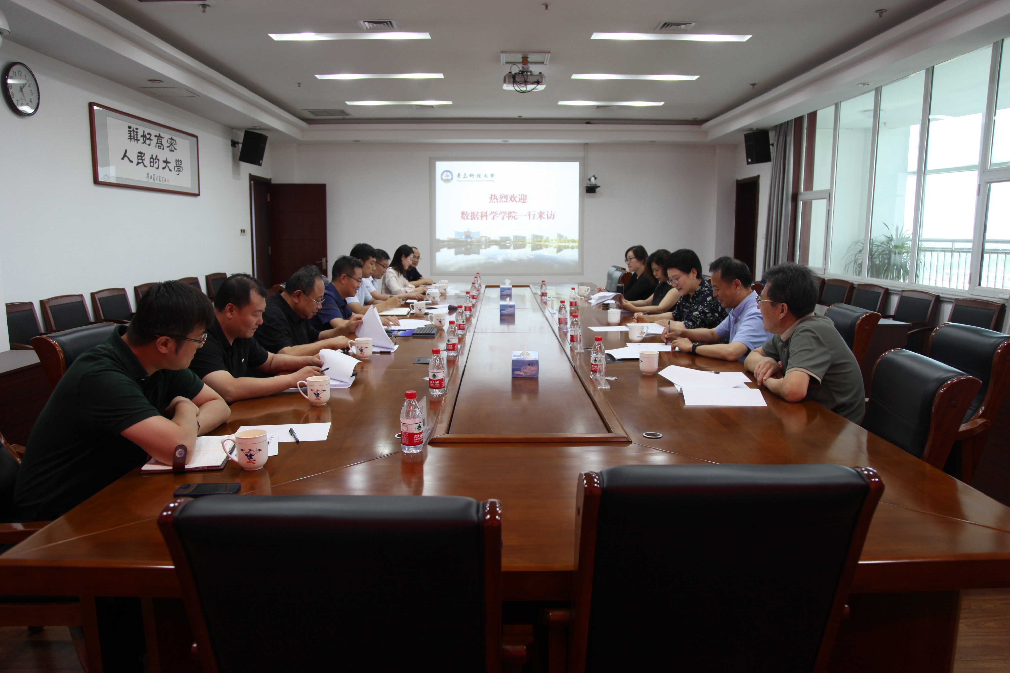 6月24日下午,beat365正版唯一官网必一党总支书记张玉、beat365正版唯一官网必一常务副院长杜军威一行前往高密校区调研交流。高密校区管委会常务副主任张青山、党委书记马骥接待了学院一行。
