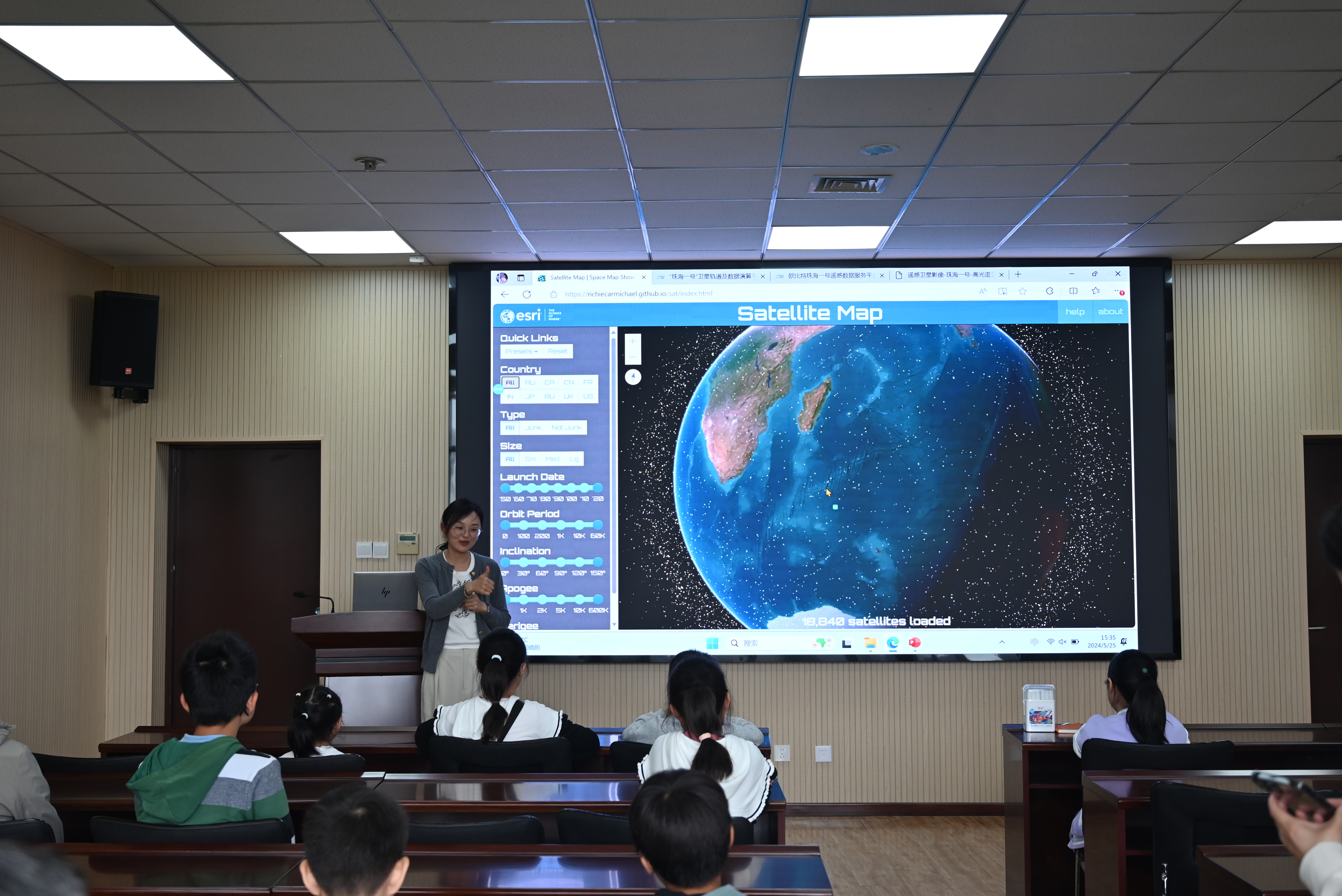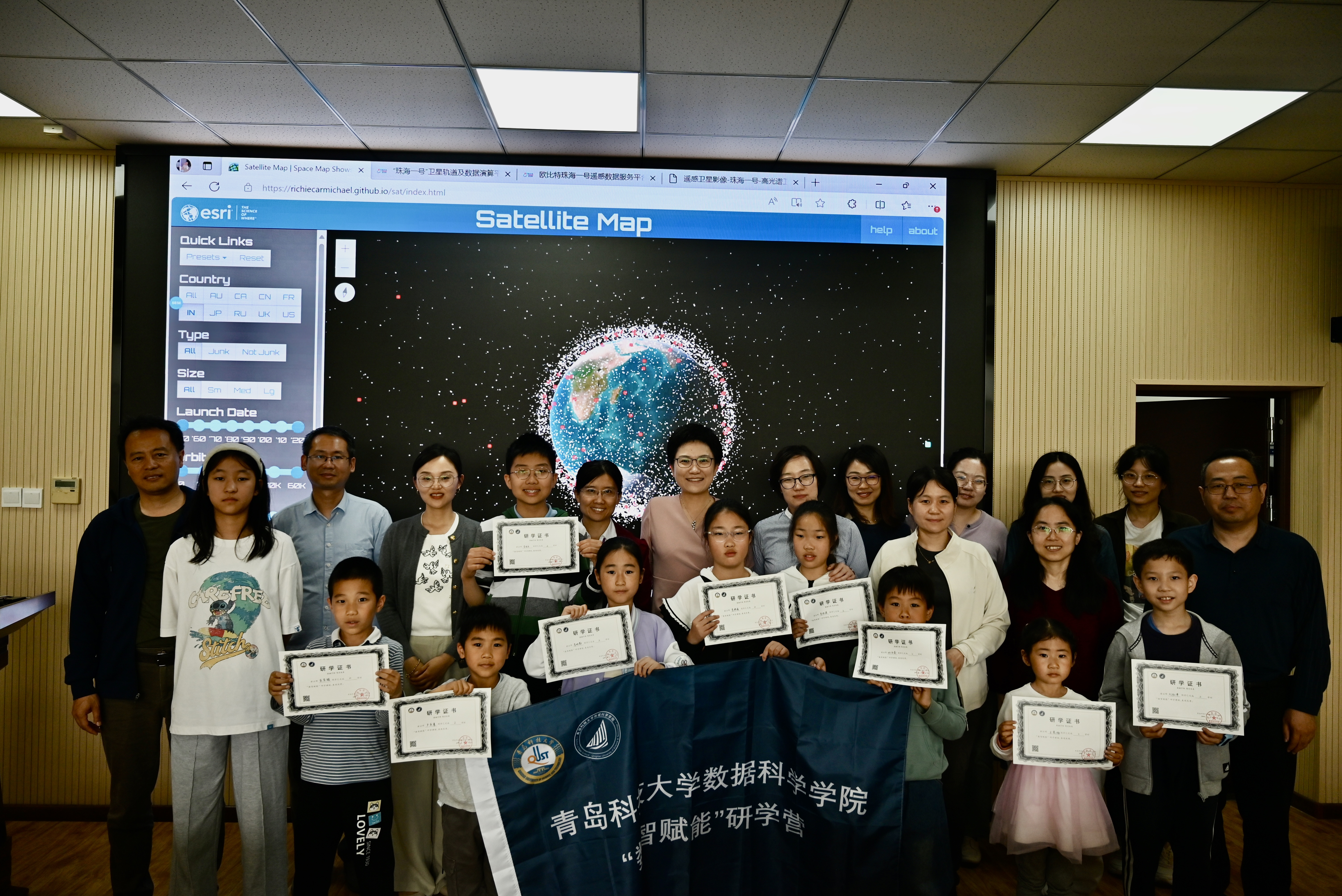 学院各专业、研究室教师认真备课,赵琦老师系统地向“数宝”们介绍了人工智能、大数据技术发展历史;齐强老师用生动的视频展示了学院师生在智能检测、多模态图像识别、大模型训练方面的成果;张淑军老师结合学院发展,详细介绍了青科大一号卫星、宇航系列芯片研制情况;孙媛媛老师通过青科大一号卫星实时返回数据,结合“绿水青山”服务平台的建设,展示了智能遥感信息技术应用方面的最新进展。学院“小星辰”志愿者带领“数宝”们体验了人工智能作画、赋诗以及体态识别等最新技术。