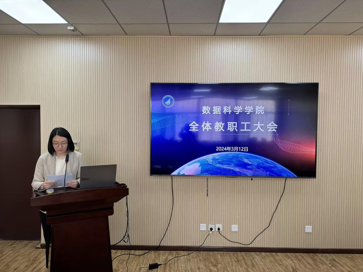 张玉结合学校2024年工作会议暨中层干部培训班有关精神和要求,对今年学院的重点工作进行了相关补充说明。她希望,全院教职工要认真学习领会本次会议精神和工作要求,认清当前学科专业发展态势,心存危机意识和改革创新意识,凝心聚力,埋头苦干,开拓进取、笃行不怠,助力推动学院各项事业高质量发展。