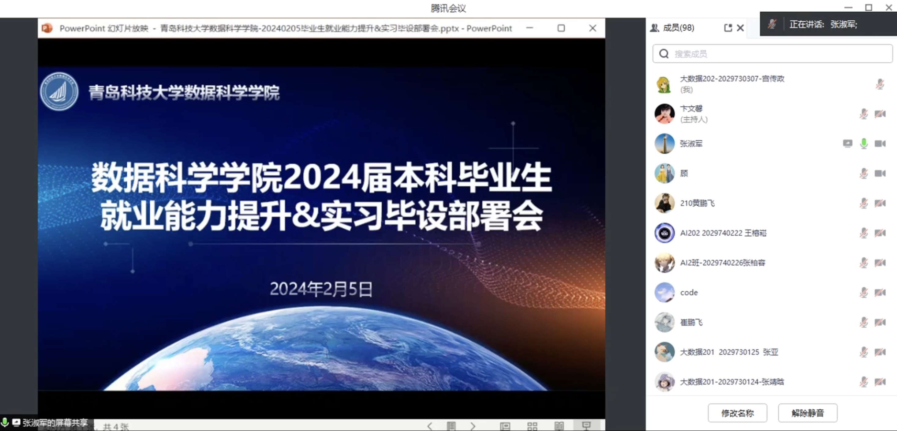 2月5日下午,beat365正版唯一官网必一通过腾讯会议召开2024届本科毕业就业能力提升培训暨实习毕设部署会,学院专职组织员官杰、院长助理张淑军出席会议并部署相关工作,学工办主任兼团委书记顾姗姗主持会议。beat365正版唯一官网必一2024届全体本科毕业生参会。