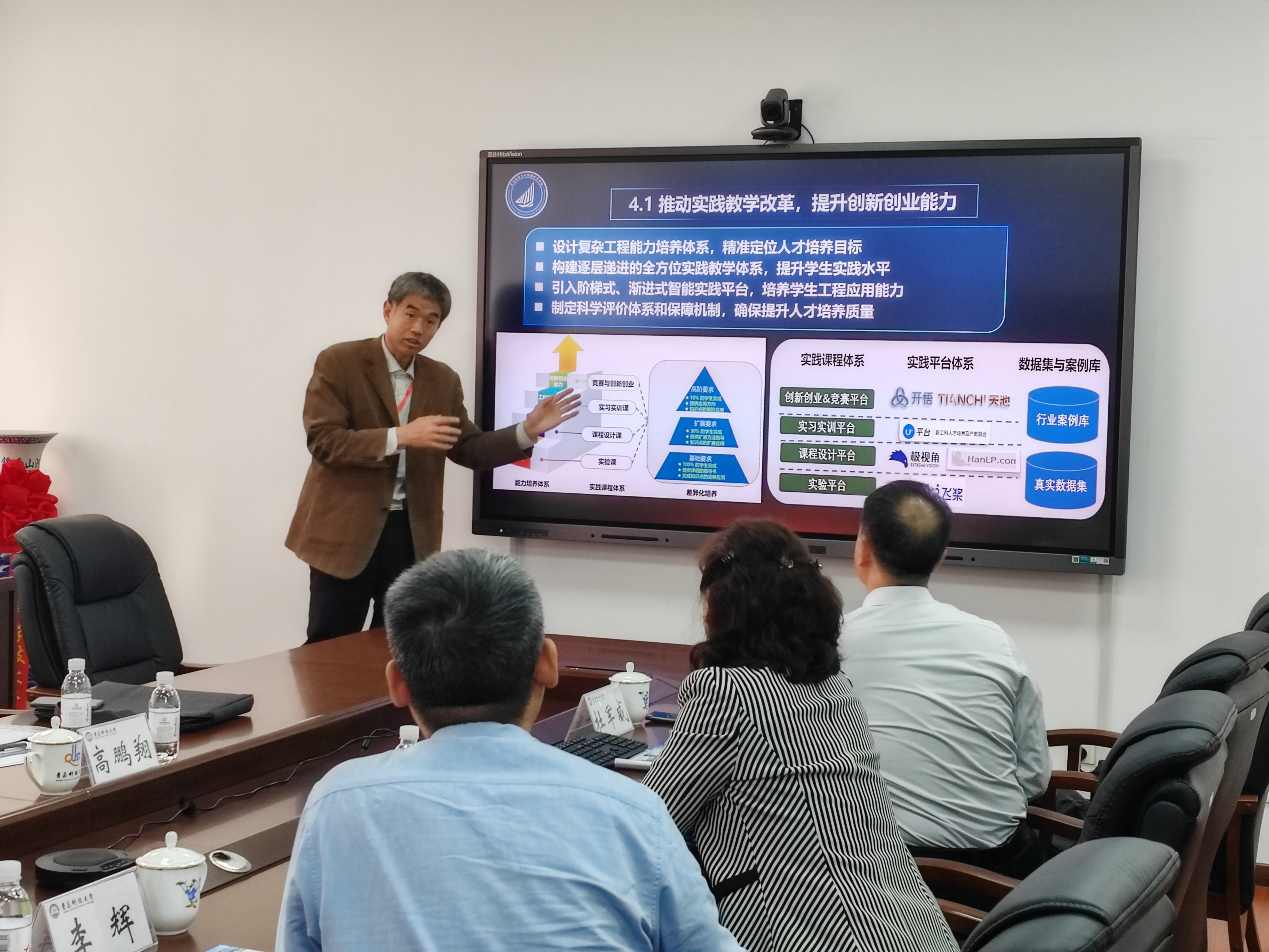 评估专家听取了杜军威副院长的学院工作汇报,全面了解了学院概况 、 人才培养 、 师资队伍 、 举措与成效 、 特色项目等各方面的情况, 高鹏翔教授对于学院在不到半年的时间建成一个独立运转的实体学院感到震惊,对于学院在迎接教育教学审核评估的各项的工作给予了充分肯定, 特别提出了学院推进的卓越工程师计划为更好的培养学生提供了平台,显示出学院贯彻学生中心的人才培养指导思想。高教授在进一步建立完善学生的评价体系,重点推动学院实践教学改革、提升创新创业能力培养水平等方面给予了具体的指导。最后,肯定了学院在管理方面的有关做法,指出beat365正版唯一官网必一一定是一个积极向上的、一个团结的、一个有生气的团队,beat365正版唯一官网必一未来可期。