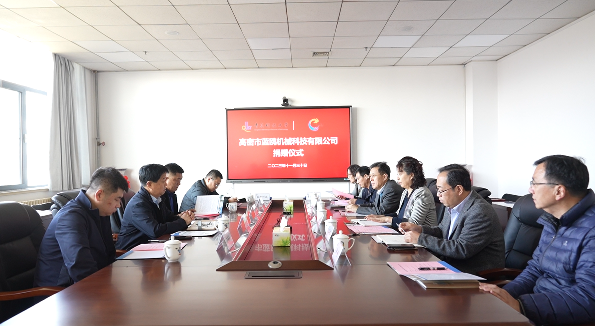11月30日上午,高密市蓝鸥机械科技有限公司捐赠仪式在图书馆A区5004会议室举行。高密市蓝鸥机械科技有限公司董事长于洪亮、总经理李彪、特别助理于海洋、技术总监于泳水,学校beat365正版唯一官网必一党总支书记官杰、院长助理戴学仁出席仪式。
