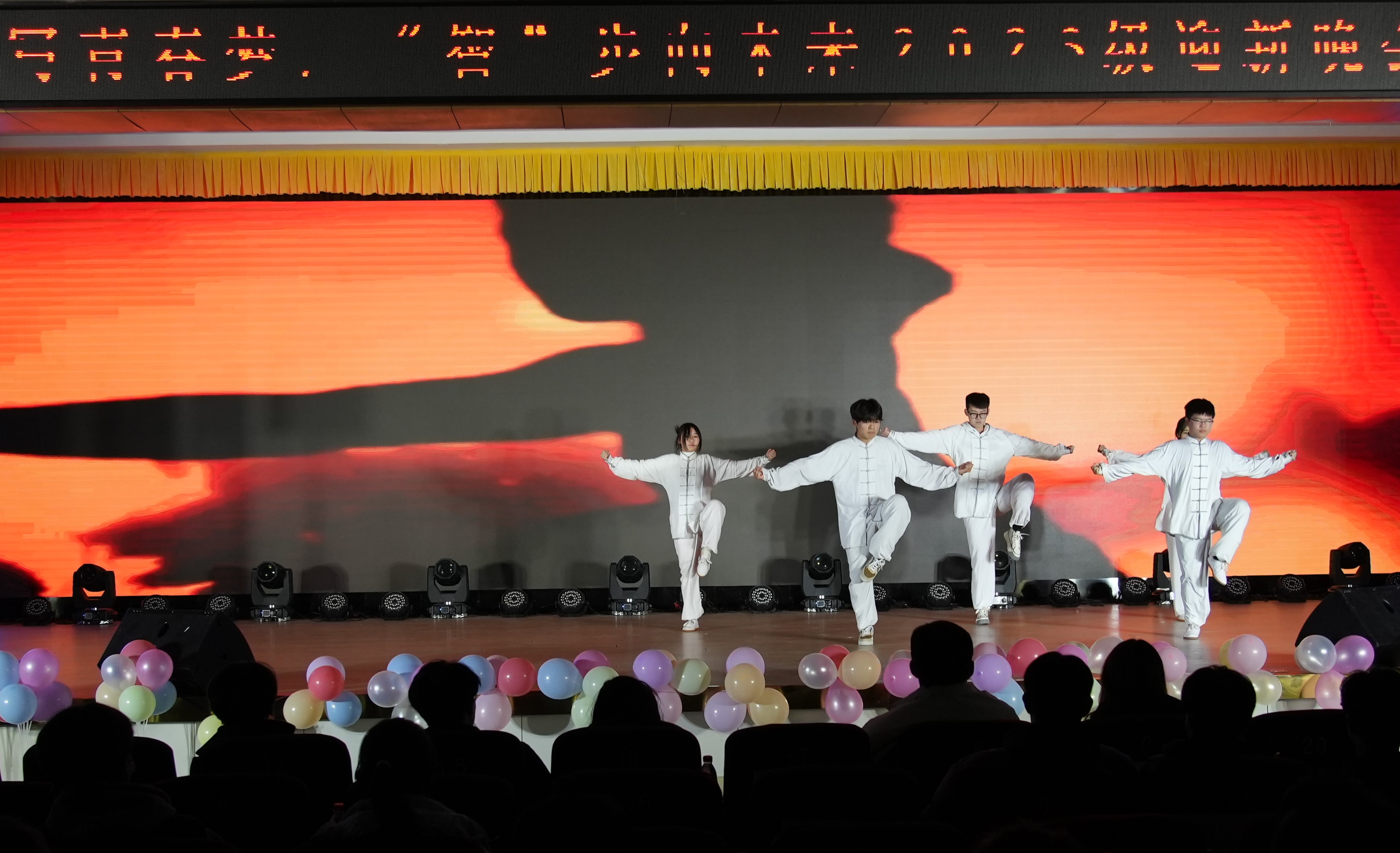 第一篇章《芳华待灼,砥砺深耕》中,舞台剧《幺九幺九之火,燃起爱国之光》把观众们带回了一百多年前那风雨飘荡的岁月,激发了数科学子心中的爱国热情;武术《群英璀璨,海纳百川》龙飞凤舞、刚劲有力的动作舞出了中国武学元素,节目极富特色;合唱《有我》将当代青年大学生与国家命运相联系,体现出数科学子奋发向上的精神状态,将全场的气氛推向了高潮;古典舞《入画江南》清丽典雅、古韵流转,为晚会增添了别样的风采。