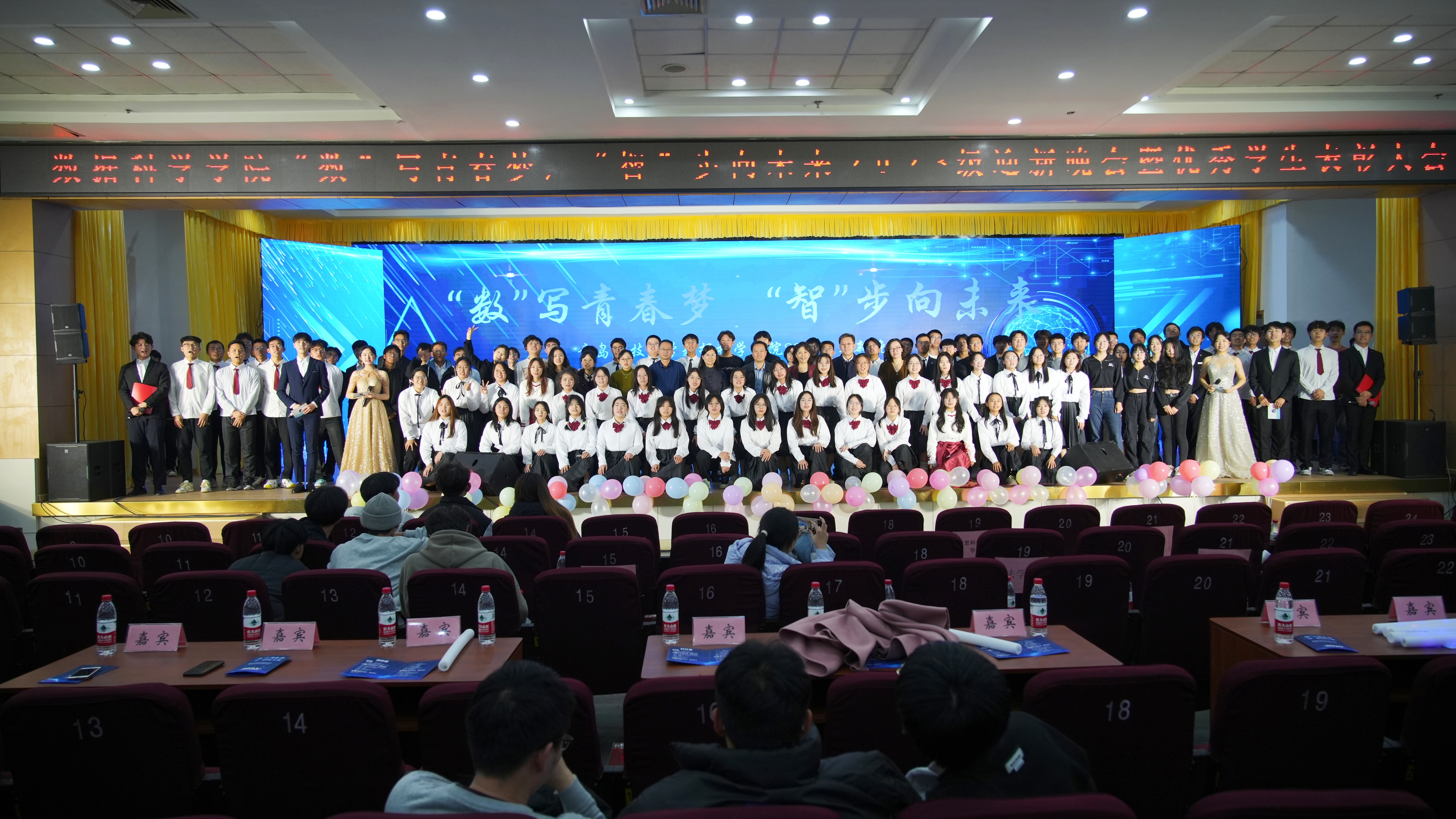 为迎接2023级新生,增强新生归属感和认同感,11月28日晚,beat365正版唯一官网必一“‘数’写青春梦,‘智’步向未来”2023级迎新晚会暨优秀学生表彰大会于崂山校区第二报告厅圆满举办。beat365正版唯一官网必一党总支书记官杰、副院长杜军威,校团委副书记李航,beat365正版唯一官网必一院长助理戴学仁、张淑军、李辉,各兄弟学院团委老师、学生会负责人beat365正版唯一官网必一团委辅导员、部分任课老师及全体本科生、研究生参加此次活动。