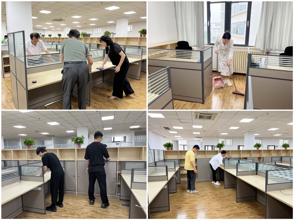 会后,为充分发挥党员干部的先锋模范作用,提升党员干部的服务意识和大局意识,学院全体党员对办公、科研区开展卫生清洁工作,党员干部齐参与、共劳动,为学院接下来的搬迁工作创造了良好的环境,也为持续提升教职工和同学们的幸福感、获得感奠定了良好的基础。