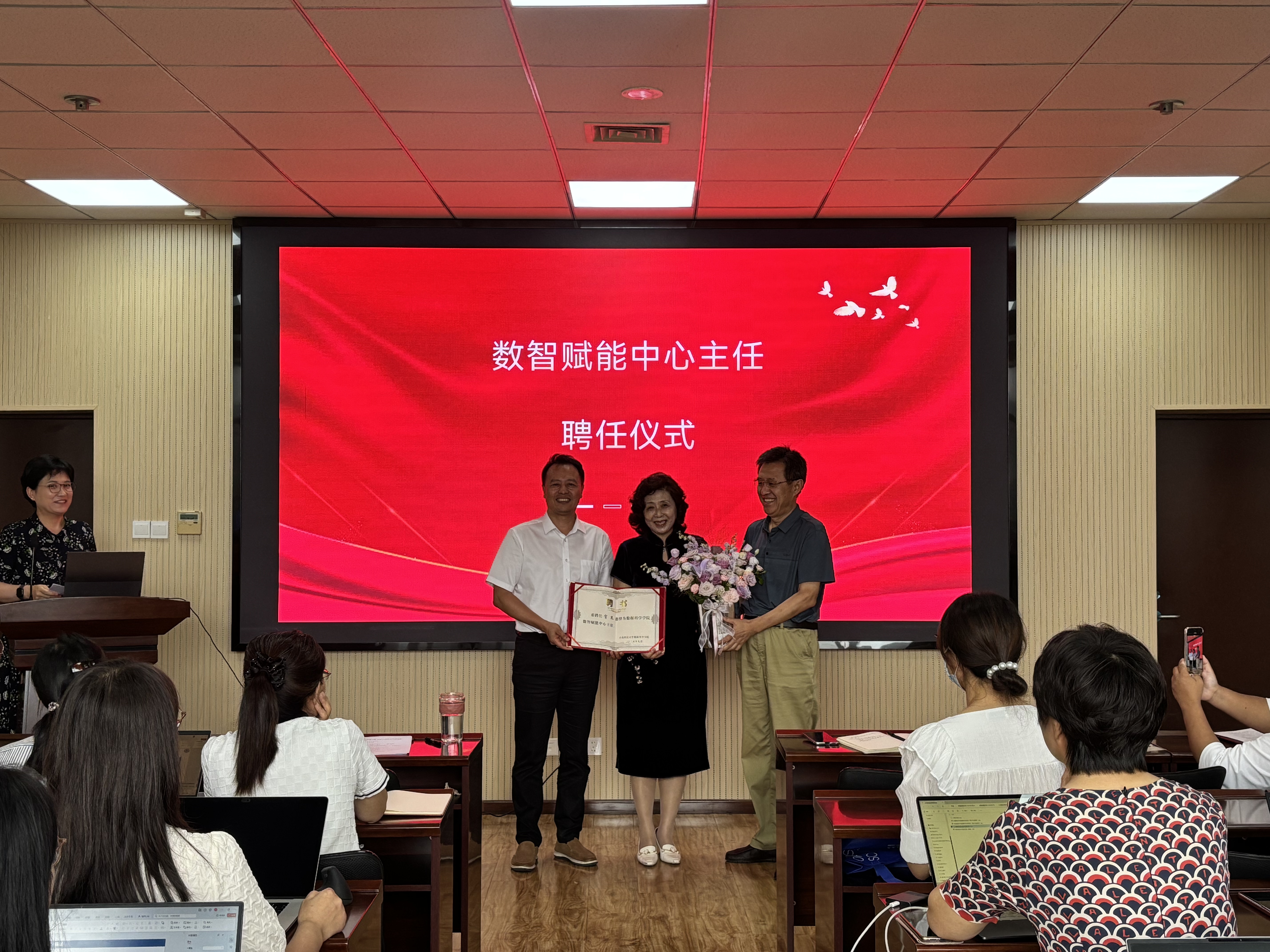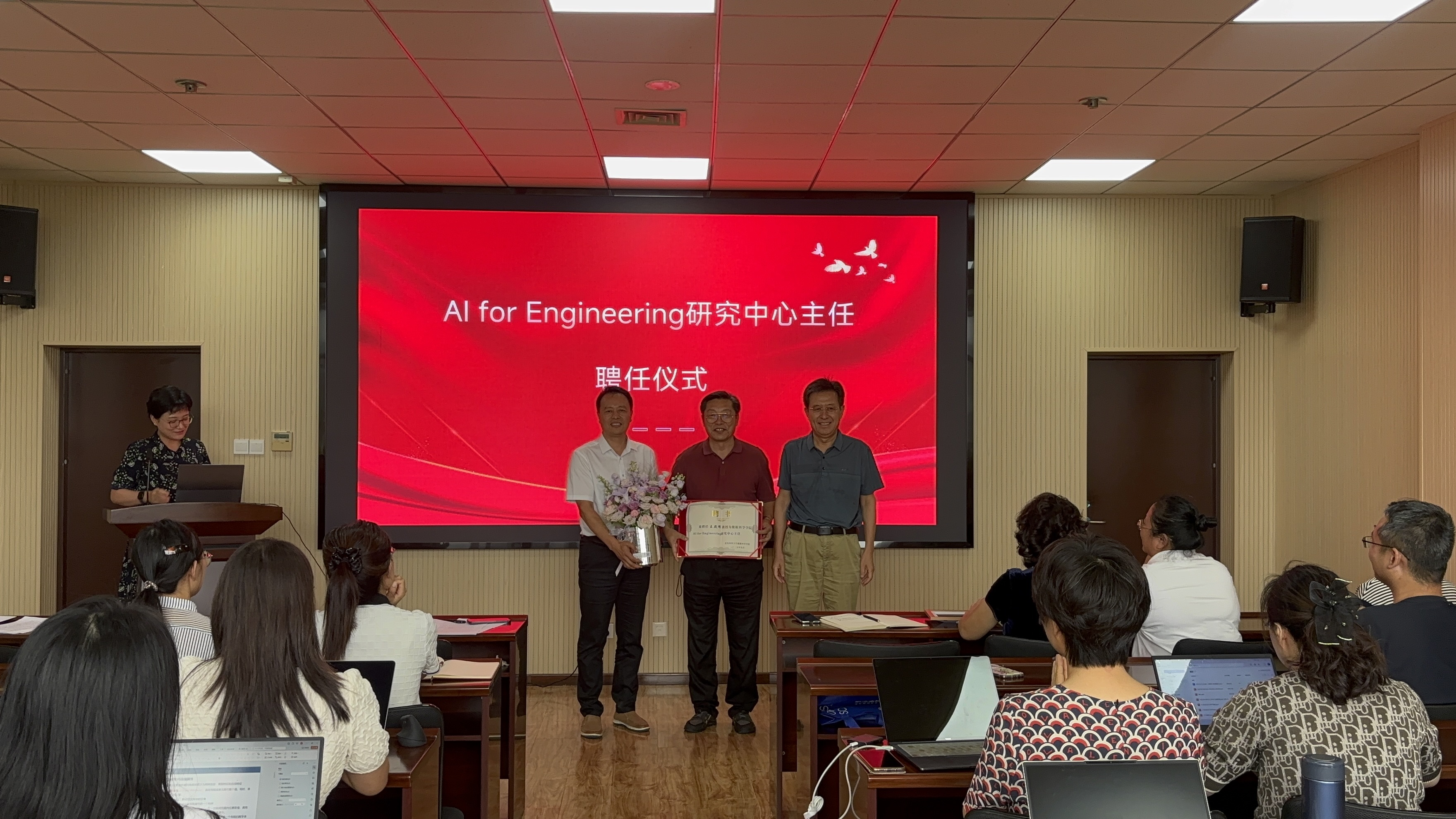 会议第二项,学院举行AI for Engineering 研究中心、数智赋能中心聘任仪式。分别聘任王殿辉教授为AI for Engineering 研究中心主任,聘任官杰教授为数智赋能中心主任。beat365正版唯一官网必一常务副院长杜军威、特聘院长助理戴学仁为两位主任颁发聘书并献花。两位主任分别发表聘任感言。