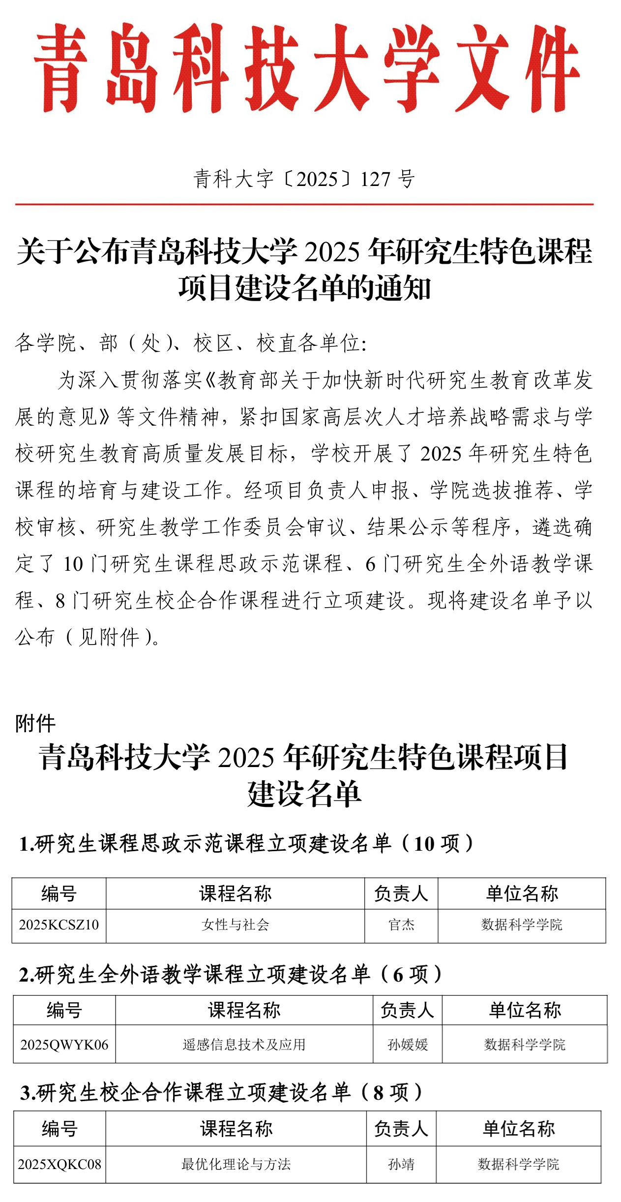 在此次立项中,beat365正版唯一官网必一官杰老师负责的《女性与社会》入选“研究生课程思政示范课程”,孙媛媛老师负责的《遥感信息技术及应用》入选“研究生全外语教学课程”,孙靖老师负责的《最优化理论与方法》入选“研究生校企合作课程”。这三门课程的立项,充分体现了beat365正版唯一官网必一在课程内容设计、教学方法创新以及产学研融合方面的积极探索与成果。