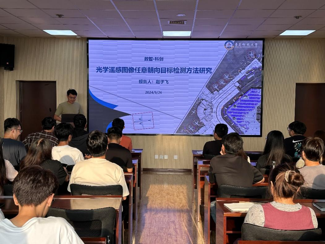 报告详细介绍了任意朝向目标检测(AOOD)的核心概念,分析了其在国防安全、应急救灾和环境监测等重要领域的应用价值。赵子飞指出,AOOD作为光学遥感图像解译的基础任务,面临着诸多挑战,包括复杂场景中的目标识别和准确定位等。通过对最新研究进展的分享,为在场的学生们提供了丰富的理论知识和实践经验。