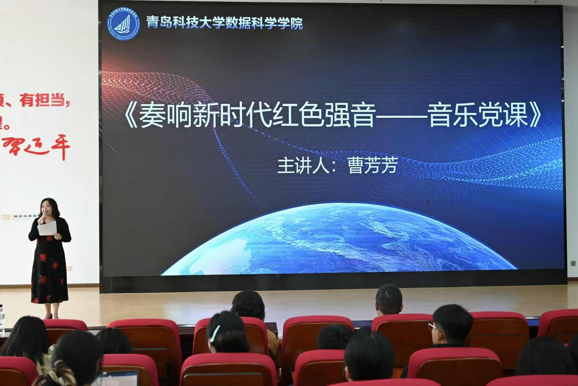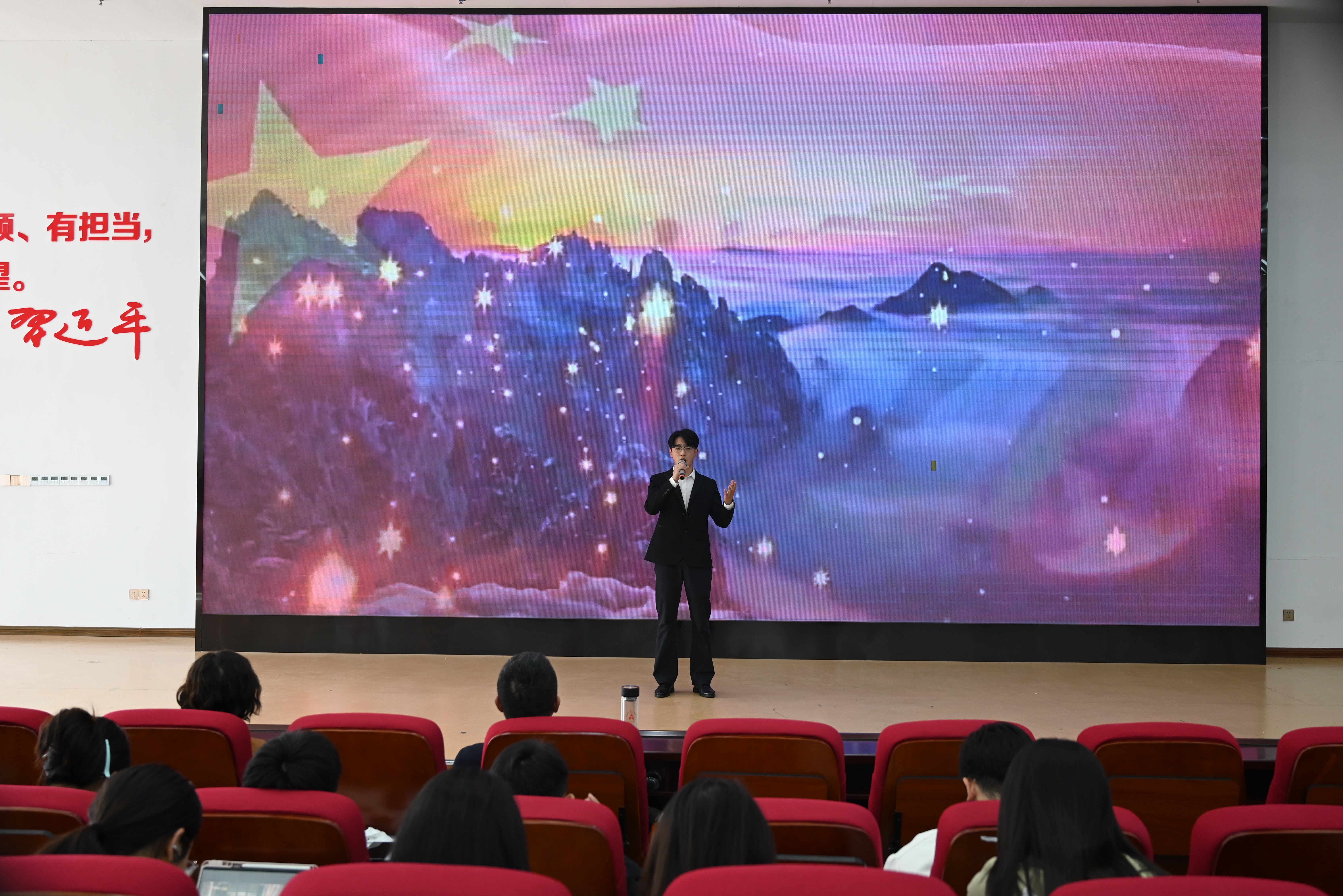 为进一步增强学生的党性修养,提升思想政治教育水平,beat365正版唯一官网必一于近期成功开展了“素养导师思享+”第四期暨青马团校培训课程。本次活动结合党史教育与艺术表演,以《奏响新时代红色强音——音乐党课》为主题,通过多样化的学习形式,引导学生更好地理解中国共产党百年来的伟大历程,坚定理想信念,增强责任担当感。此次活动不仅让同学们在欣赏艺术的过程中感悟革命精神,更激发了他们传承红色基因、勇担时代责任的决心。