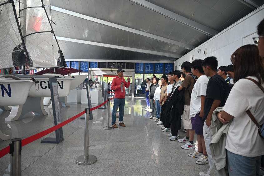 次日,阳光明媚,海风拂面。同学们首先参观了奥帆博物馆,这里记录了中国帆船运动的发展历程和辉煌成就。通过一件件展品和一段段历史,同学们不仅增长了知识,更激发了对海洋文化的热爱和对帆船运动的向往。参观结束后,同学们来到码头,开始了他们期待已久的帆船体验。